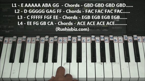 L1 – A EEEEE EFE DD – Chords – GBD GBD GBD GBD….